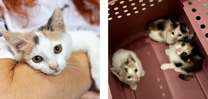 Kitty is searching for a home! Kitty was found abandoned alone at our feeding spot at the park in the middle of September, but was initially uncatchable. When we first saw her, she seemed healthy and in good condition, but started to deteriorate as time went by; she just didn't adjust to living on the streets. When Kitty got an ulcer on her lip and stopped eating, Valeria finally caught her and she was hospitalized for 10 days in the beginning of October. Now a little less than four months old Kitty revealed to be a brave and social girl when she got to foster care, adjusting to her new environment and friends with ease. She will come to Finland and straight to her home dewormed, vaccinated and tested negative for FIV and FeLV on the 9th of December. Can be adopted to befriend another cat or with another one of our organization's cats (comes from the same foster home with Clementine and Pumpkin). Has to be spayed by her people at the appropriate age.