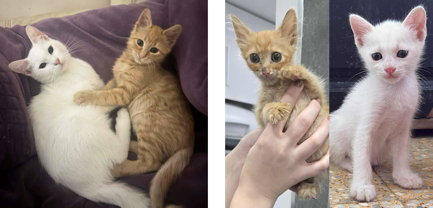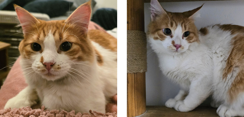 Kutt (ginger tabby) was abandoned in one of the populations we take care of in mid-August 2025 when he was four weeks old. Crying after every person and car he could see Kutt was sick and severely malnourished when found, but is growing up to be a gorgeous long-haired cat despite this. Blake (white) was found by our friend Ellie from another population we take care of in early August 2025 when he was three weeks old. The boys have the same estimated birthday and are now a little less than seven months old, very attached to one another in their foster home. Both are energetic and affectionate. Kutt is extremely kind with other cats and likes to spend time with children too. Blake can't get enough of playing and would likely be perfect for leash walks. The boys will come to Finland and straight to their home or to foster care in Kerava neutered, dewormed, vaccinated and tested negative for FIV and FeLV on the 17th of March. Can be adopted only together.