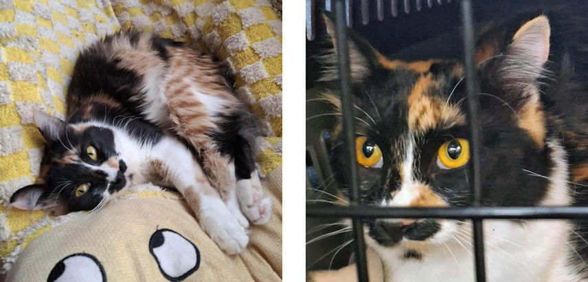 Emmy was found badly bitten by a dog and in need of lifesaving surgery in the beginning of December 2025. One of her hind legs had to be amputated, but this hasn't slowed this approximately six-month-old girl down one bit. Emmy has a brave, social and playful personality. She will come to Finland and straight to her home spayed, dewormed, vaccinated and tested negative for FIV and FeLV possibly in March. Can be adopted to befriend another cat or with another one of our organization's cats.