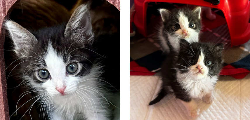 Nathan and Philippa were found alone outside around the same time in October 2025 when they were approximately two months old. Nathan was rescued from a drain, Philippa from the middle of a busy road. Now eight months old Nathan and Philippa have grown together and love each other very much. Nathan is a playful purring machine, social and affectionate boy. Philippa is a social and playful girl who gets along great with other cats. They will come to Finland and straight to their home or to foster care in Kerava neutered, spayed, dewormed, vaccinated and tested negative for FIV and FeLV on the 5th of May. Can be adopted only together.